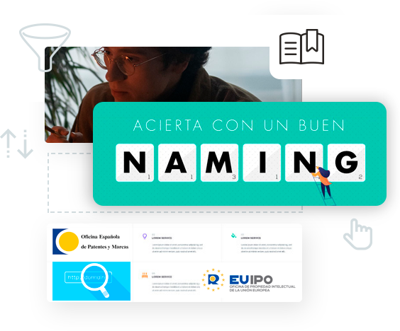 Nos encargamos también de otros trámites relacionados, (ya que no basta con dar con un buen naming), sino que además las debemos comprobar su disponibilidad y originalidad. De esta forma, nos aseguramos de que el nombre esté disponible ante la OEPM (Oficina Española de Patentes y Marcas). También corroboramos su inserción en el medio digital clave, y de estar ya previamente registrado (por ejemplo en Instagram o twitter) buscamos alternativas de nombres libres.