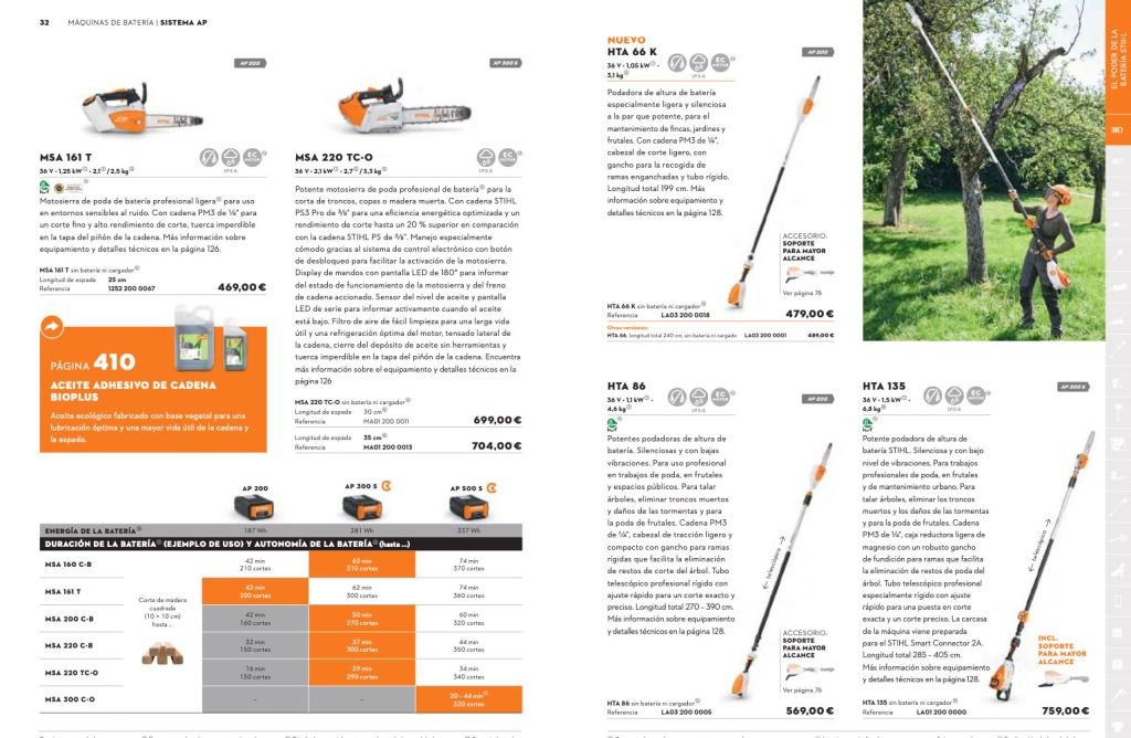 - Información Técnica y Especificaciones: Proporciona detalles técnicos para cada producto, como potencia, peso, dimensiones, y autonomía (en el caso de productos con batería). Esto es crucial para los profesionales que necesitan tomar decisiones informadas.