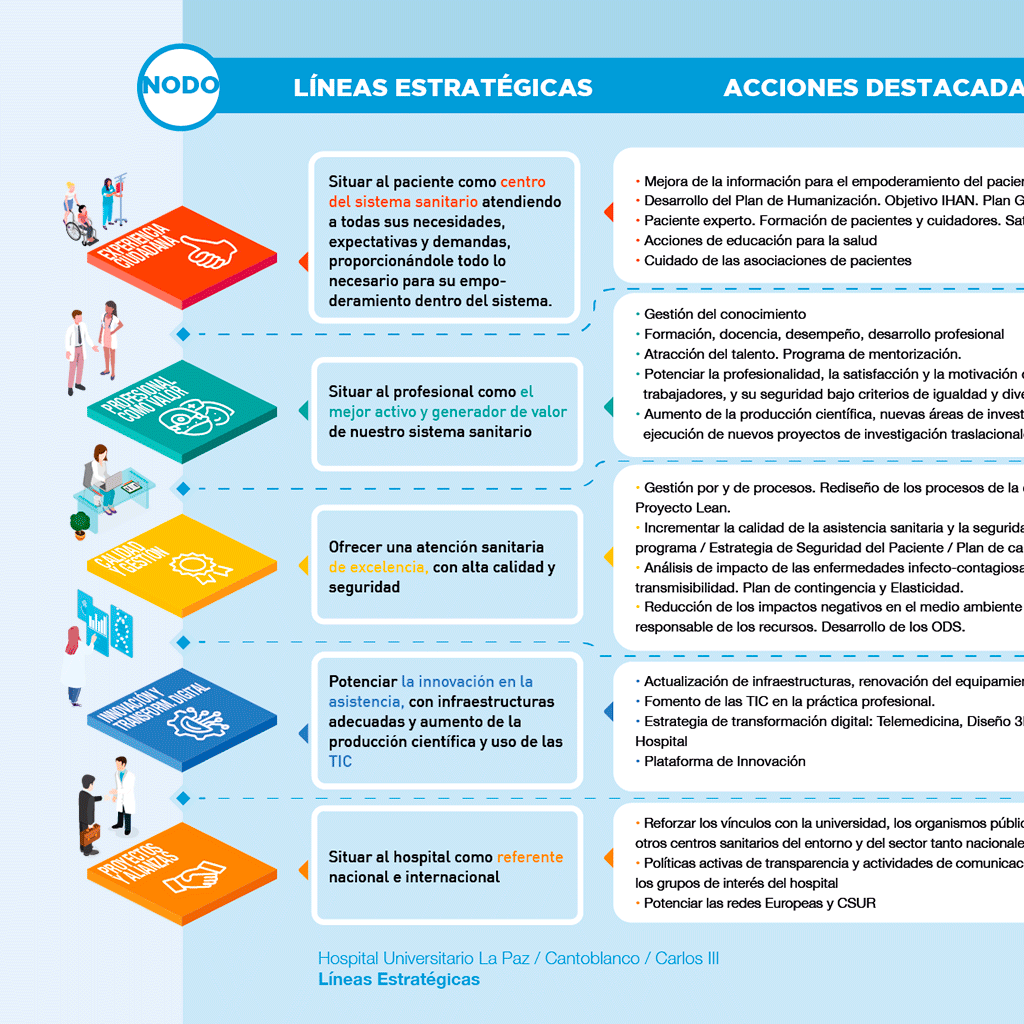 El trabajo realizado en estas infografías y en el diseño de la identidad corporativa de los servicios y entidades del Hospital La Paz reflejan nuestra capacidad para combinar creatividad, habilidades de diseño y comprensión de las necesidades de comunicación del cliente.