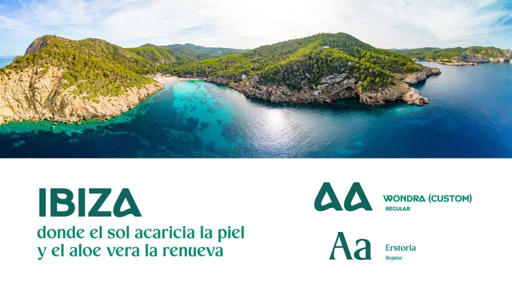 - Tipografía: Mantuvimos la tipografía de palo seco, pero trabajando la letra ‘A’ amalgama de Ibiza – y Aloe, para poderla luego trabajar como futuro isotipo.