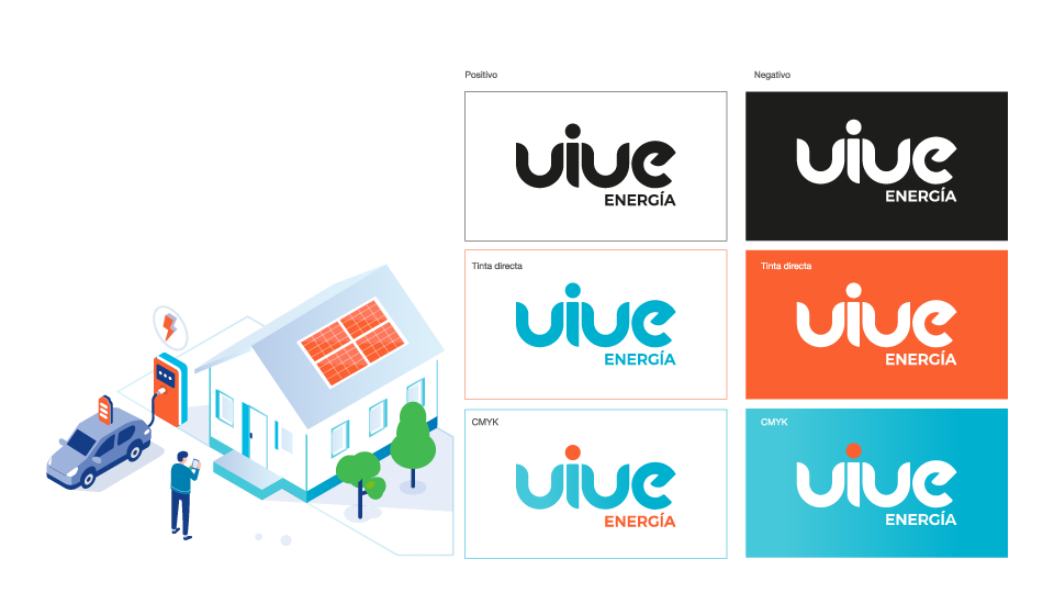 We had come across a logo with some basic problems: REDUNDANCY: It seemed to us that ‘The energy you use to live’ as a slogan for a company whose naming is already ‘Vive Energía’ did not add value. SHAPES: The ending of the letter ‘e’ was not as harmonious as possible, that is to say, the cane where the ‘e’ ended was not as sinuous as the rest of the letters, the joins and separations of the letters had reading problems and in itself the ‘e’ was not as harmonious as the rest of the letters. no responsive logo for small scales. LACK OF UNITY: We found 3 versions of the logo with 3 different colours, in our opinion Coca-Cola does not change its brand colour even though it has different products; Endesa’s blue does not vary despite the different services it offers. The versioning applies to products, not to company brands.