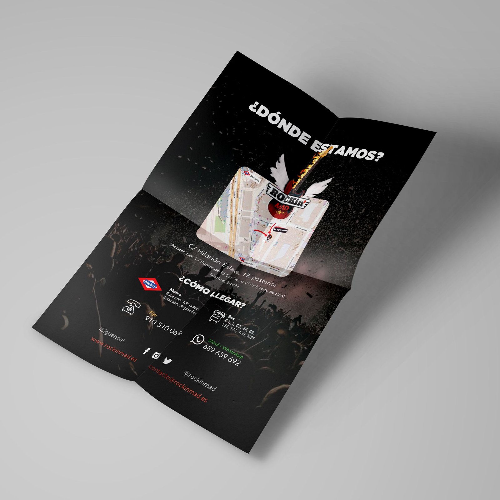 El resultado fue un nombre muy descriptivo habla desde el gerundio en inglés: Rockeando en Madrid, que define la actividad y el lugar, jugamos también con un apóstrofe ‘ para acortar el nombre y hacerlo casual.