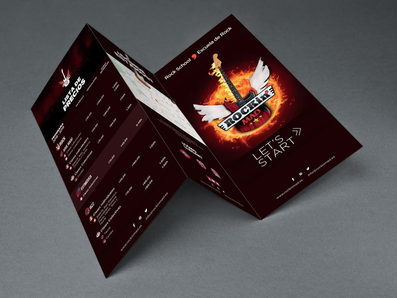 El proyecto consistió en el diseño de su identidad corporativa para ello en Brandesign trabajamos primero en una breve Auditoría de Marcas para conocer el panorama de escuelas de música presentes en el mercado para crear un valor diferencial, ya marcado por la escasa presencia de escuelas tematizadas en el rock, estudiamos la forma de vivir del madrileño que adopta el Rock como un estilo de vida: su forma de vestir, los lugares donde recurren, como suelen relacionarse para con ello crear un Mood Board visual que nos sirviera a todo el equipo creativo de inspiración.