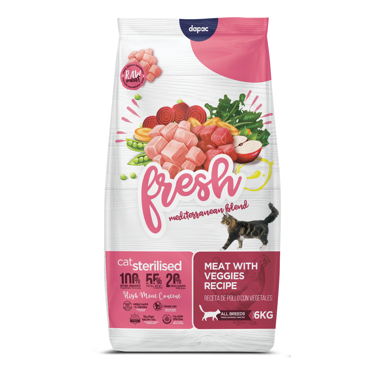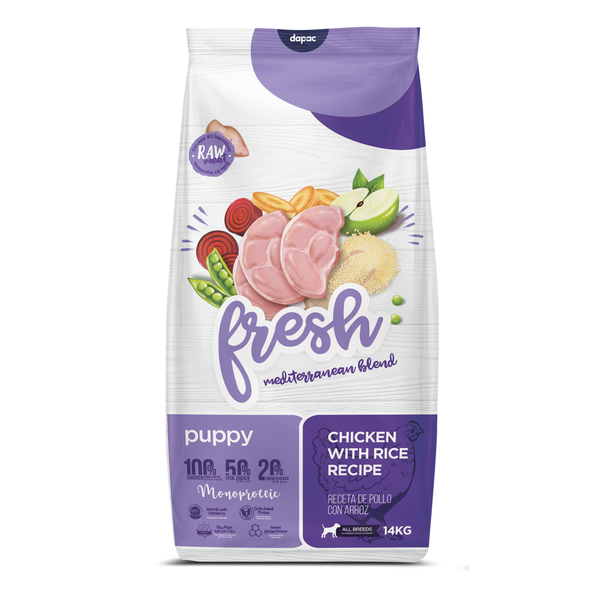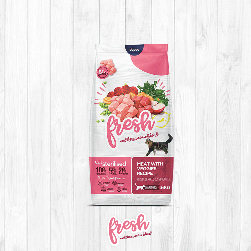 Y tras el éxito que tuvo el diseño de toda la linea de piensos Fresh de alimentación seca, la marca quiso abrir por primera vez el complemento alimenticio sacando una línea de alimentación húmeda. Para ello, elaboramos el diseño de seis nuevas etiquetas para la gama de patés húmedos, que aunque no contábamos con todo el espacio disponible en los artes de los sacos de pienso de 4kg y 15Kgs, pusimos el mismo énfasis gráfico de Fresh con sus colores y llamativas ilustraciones en sus etiquetas.