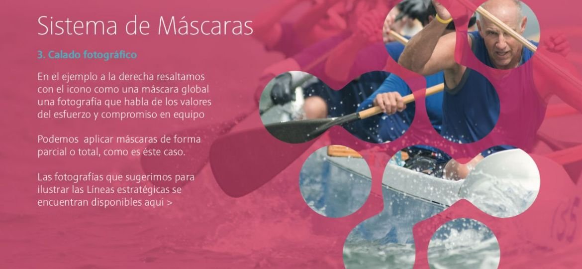 Finalmente, habiendo establecido ya una identidad global para el imagotipo responsive del Plan Estratégico, y designando iconos, colores y propósitos para cada Línea Estratégica individualmente, recogemos toda la estrategia de identidad corporativa en un manual. Cuando afrontamos un Brand Book o Manual de Identidad Corporativa lo hacemos entendiendo que más que dictaminar las pautas o reglas de implementación de la marca, lo que debemos también hacer es inspirar a continuar su creación. Lo hacemos desde un exhaustivo manual reflejando la identidad verbal o visual de la marca, creando pautas técnicas y también creando MockUps o ejemplos ejecutándo los posibles escenarios de la marca en ficticios digitales. Para este Plan Estratégico nos tomó 85 páginas plasmar estas situaciones y guidelines. Os compartimos algunas de esas páginas.
