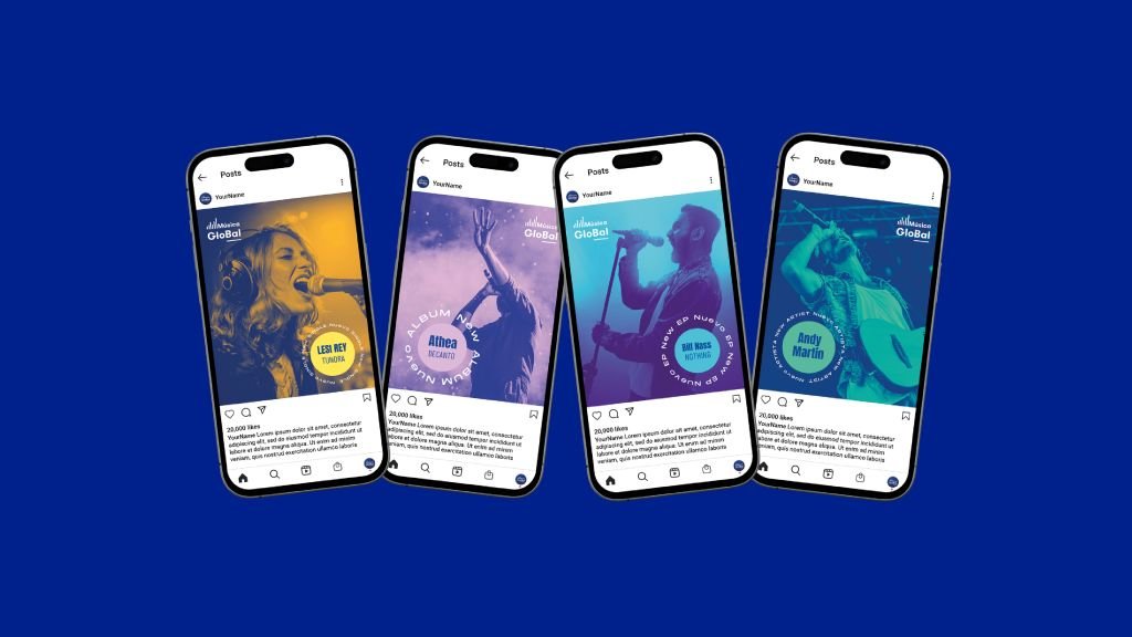 En noviembre de 2024, Marina nos contactó desde la discográfica Música Global, con una necesidad muy clara: dar coherencia visual a sus redes sociales. Con una comunidad consolidada y un flujo constante de contenidos —desde nuevos lanzamientos hasta fichajes de artistas y conciertos—, necesitaban un sistema de plantillas flexible, reconocible y fácil de mantener.