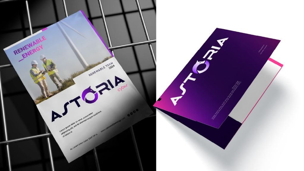 Creamos un brandbook corporativo completo que incluye tipografías personalizadas, combinaciones de color, uso correcto del logotipo, iconografía vectorial, plantillas para redes sociales y materiales impresos. Esta guía asegura la coherencia visual de Astoria Cyber en todos sus puntos de contacto.